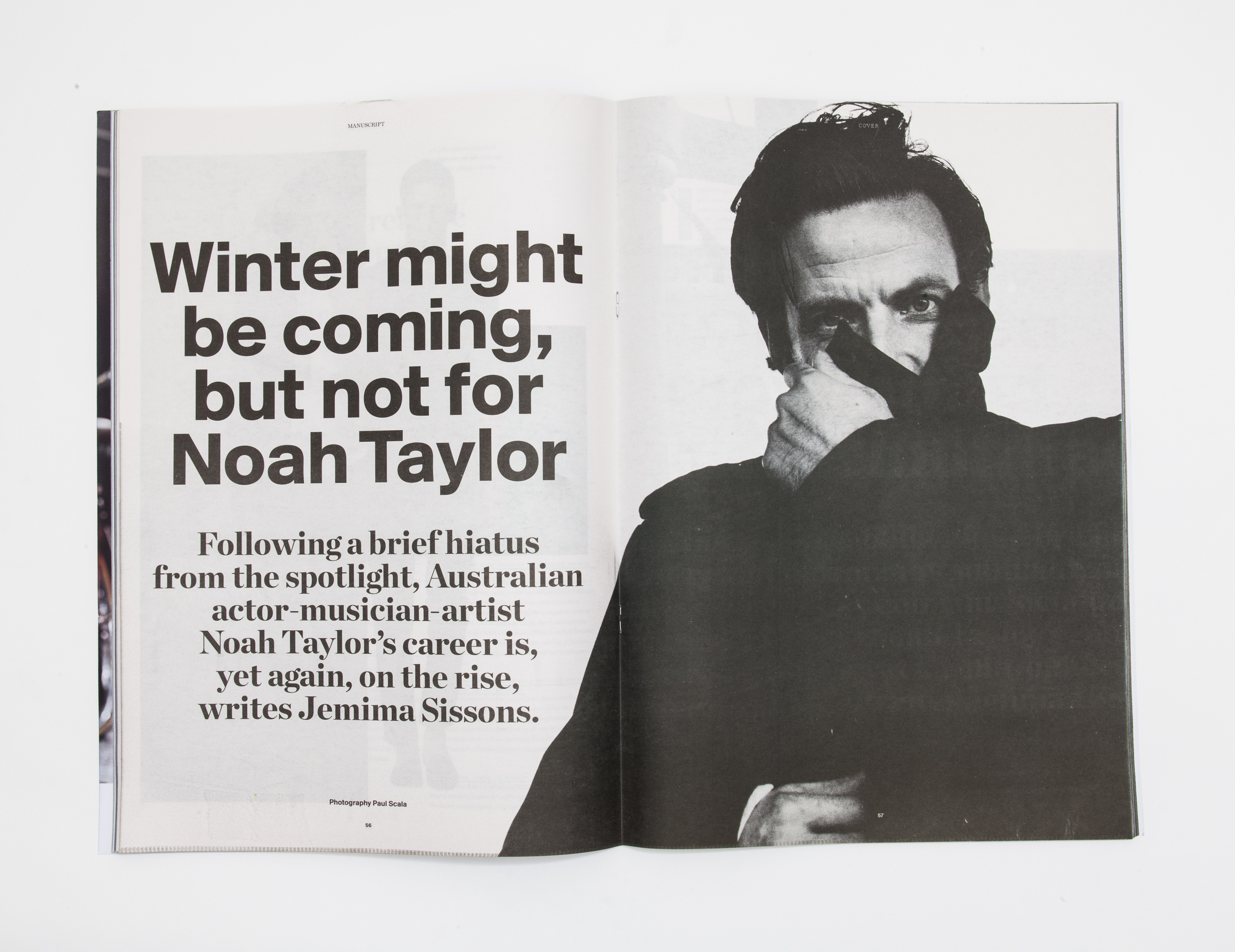 It’s excellent that Mr Taylor returns to the spotlight, adding some diversity and interest to our screens, but simultaneously it’s thrilling to see fresh blood, too. In State of the Arts [page 22] we profile some of Australia’s brightest emerging talent across the fields of acting, music, dance, design and writing. Included are some familiar faces – ex-Van She member Tomek Archer and previous Manuscript cover star, Australian Ballet’s Rohan Furnell among them – but also some names that we’re certain are to be the next big things. Thomas Cocquerel, a 24-year-old NIDA graduate, left the day after our shoot for Amsterdam, where he’s currently filming a part in The Kidnapping of Freddy Heineken, a film based on a true story told in its literal title, opposite Anthony Hopkins and fellow Australian Sam Worthington. Movement, meanwhile, is an electronic band to have emerged from Sydney’s west and recently signed with hit-after-hit record label Modular People. I’m personally honoured that these very talented men grace our pages, made possible with the support of Dior Homme, whose resort collection is worn throughout.